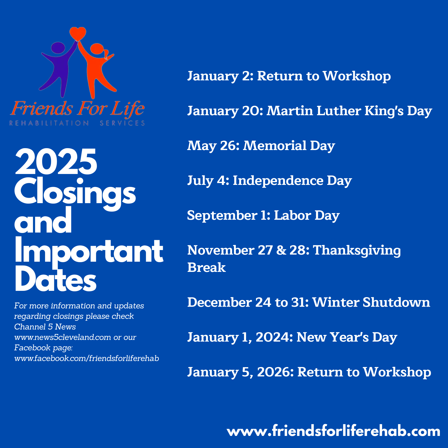 If you think Friends for Life Rehabilitation Services is the right place for you, or someone that you know, you’re always welcome to visit and tour our facility. We take pride in our facility and program, and we strive to offer what is best in this field for our consumers.